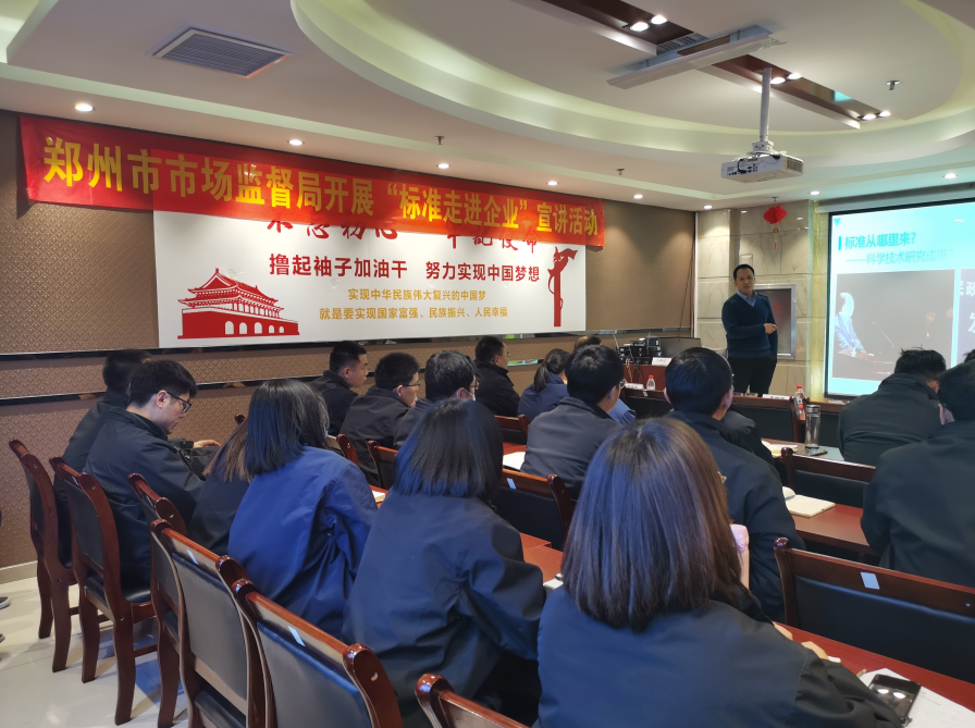 郑州市市场监督管理局立足“标准走进企业、标准服务企业”,特邀请市局标准化处王峥记主任为企业进行培训授课,kok投注官网下载公司总经理孙青及各事业部负责人、各部门负责人、经理、主任共计30余人参与了此次培训活动。