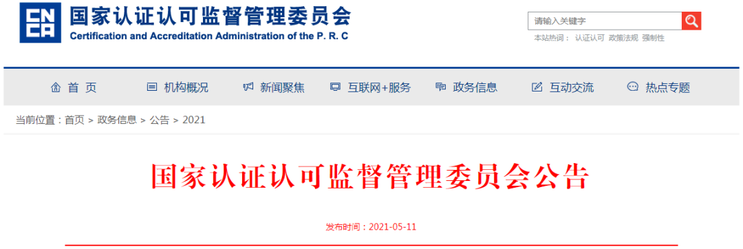5月11日,认监委发布公告,决定开展一批强制性产品认证机构和实验室指定工作并扩大强制性产品认证实验室日常指定实施范围,以进一步便利生产企业获得认证。详情如下: