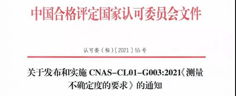 中国合格评定国家认可委员会(CNAS)秘书处组织修订了CNAS-CL01-G003:2021《测量不确定度的要求》。经过公开征求意见,并经相关批准,现予以发布。